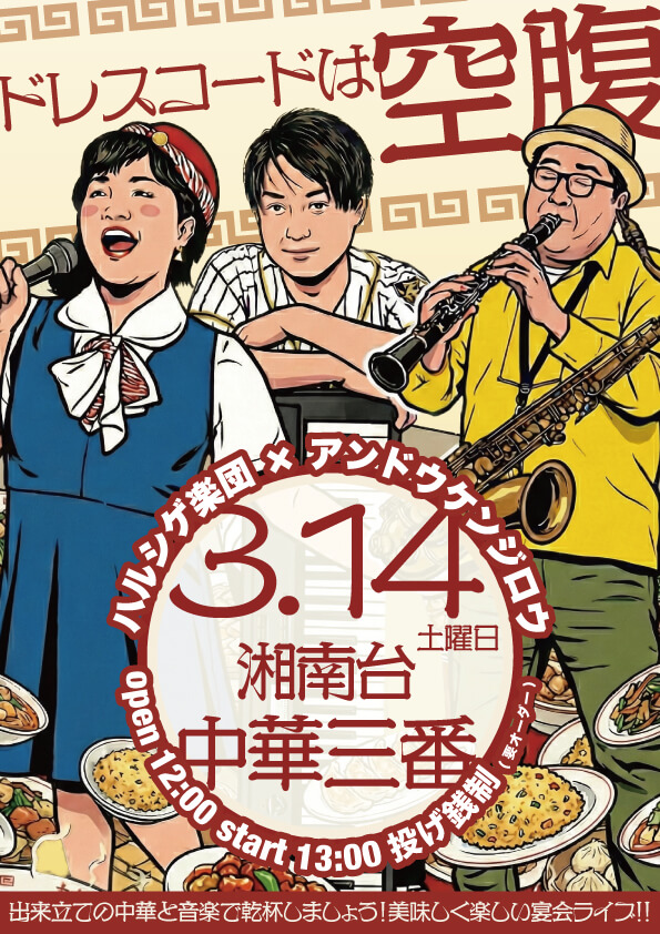 湘南台の中華三番にて、お昼のライブです。